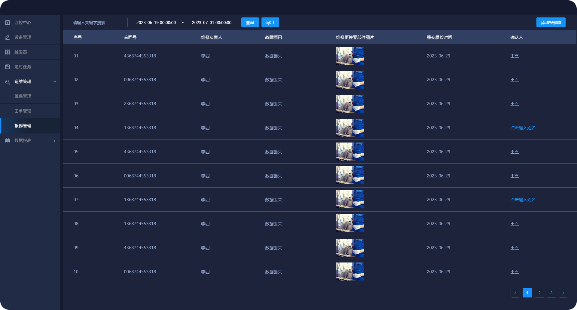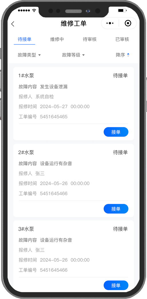 以生產(chǎn)設(shè)備為核心,面向設(shè)備提供全維度資料查詢、設(shè)備報(bào)修、維修派工、設(shè)備狀態(tài)監(jiān)測(cè)等功能。